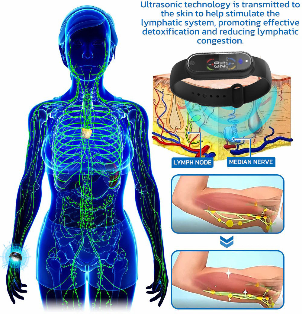 We bring you a revolutionary and innovative solutionâQIAWI⢠Detox Wristband! This advanced product features cutting-edge design, combining ultrasonic waves, far-infrared technology, and negative ions to specifically target blood sugar regulation, fat reduction, body shaping, and lymphedema relief.With no need for medication or surgery, QIAWI⢠helps you effortlessly say goodbye to excess fat and swelling, restoring health and vitality! Experience the lightness and wellness that innovative technology bringsâitâs the change you deserve!